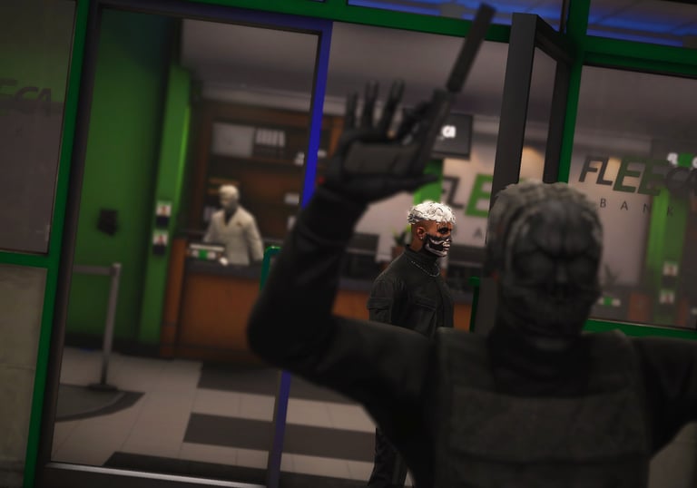 Organized, story driven heists including bank robberies and major operations. These events require preparation, teamwork, and carry serious risk with lasting impact.